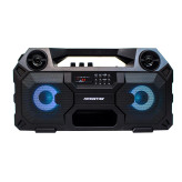اسپیکر KBS330 کینگ استار بوم باکسی دیگر از سری اسپیکرهای تولید شده توسط کمپانی « کینگ استار» (kingstar) است که در بازار جهانی و همینطور ایران عرضه گشته است. این اسپیکر حرفه ای مانند یک کیف اسپورت ورزشی طراحی شده است، حتی با نگاه کردن به آن به شما حس قدرت را منتقل می کند. این اسپیکر دارای صفحه نمایش LED نیز هست و به شما در پیدا کردن ترک مورد نظر خود و یا فرکانس رادیویی کمک خواهد کرد. بله درست متوجه شدید، این محصول از رادیو FM نیز پشتیبانی میکند. صفحه کلیدی که در کنار این صفحه LED مشاهده میکنید به شما امکاناتی چون تنظیم رقص نور جستجوی کانال تغییر مود و … را می دهد. در قسمت بالایی آن کلید های چرخشی کم و زیاد کردن صدا و صدای میکروفون قرار دارد. همچنین دارای سوکت میکروفون و AUX نیز می باشد. بوم باکس بلوتوثی کینگ استار مدل KBS330 از فلش مموری و کارت میکرو و AUX نیز پشتیبانی میکند. شما علاوه بر اتصال از طریق بلوتوث می توانید با یک کابل AUX و یا فلش مموری و حتی کارت میکرو لیست آهنگ های مورد علاقه خود را با این اسپیکر پخش کنید. این محصول با ابعاد 46x17.3x24.3 سانتی متری اش دارای دو بلندگوی 12 واتی با سایز 4 اینچ است. فرکانس پاسخ گویی آن 70 تا 20 هزار هرتز می باشد. این محصول قطعا صدایی شفاف و بسیار با کیفیت را ارائه می دهد و نیاز شما را به یک اسپیکر در خانه، مهمانی و حتی سفر بر طرف خواهد کرد. در طراحی این محصول به مدرن بودن محصول توجه شده است. اگر باشگاه کوچکی دارید این اسپیکر نیاز شما را برطرف خواهد کرد. در صورتی که می خواهید از این اسپیکر در جشن های خود استفاده کنید، می توانید آن را با اسپیکر همنام دیگر سینک کنید و با آهنگ خود شعاع بیشتری را پوشش دهید. این اسپیکر همچنین دارای ورودی میکروفون نیز هست و با یک میکروفون می توانید در خانه و یا در جمع دوستان آواز بخوانید و سخنرانی کنید.